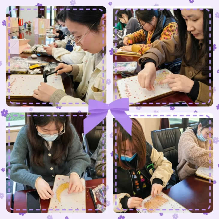 三月芳菲,灼灼韶華,在這個草木蔓發,春山可望的美好時節,“三八”國際勞動婦女節如期而至。值此專屬節日里,3月7日下午由工會牽頭,海陵質量管理部和人力資源部承辦的“女神節”特別活動在行政樓一樓大會議室精彩呈現。平日里柔肩扛重任的姑娘們,退去工服相聚在此,在QA王偉和閆紫薇的帶領下體驗了一次手工弦絲畫的制作。