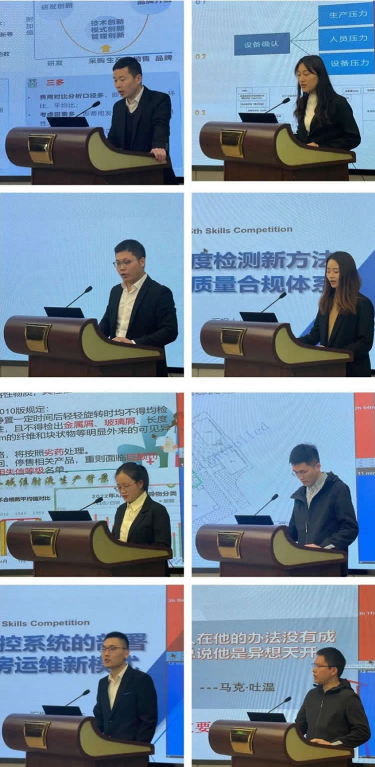 3月20日13:00,比賽正式開始。制造部生產運營辦公室供應鏈小組帶來《集采品種成本精準測算》的匯報,分享了如何助力集采入圍;技術部提升隊帶來《健全設備確認評估體系,全面提升設備產能》的匯報,分享了如何進行設備確認優化;固體制劑1號車間務實小組帶來《建立標準化記錄及流程管控,降低批記錄填寫錯誤率》的匯報,分享了產品A記錄填寫優化過程;粒度方法開發小隊帶來《建立粒度檢測新方法,完善質量合規體系》的匯報,分享了如何堅守產品質量;小容量注射劑1號車間恒星小組帶來《降低產品B可見異物》的匯報,分享了對“任何困難都不能把我們打倒,唯有質量”質量精神的堅守過程;設備工程部洞悉小組帶來《降低純化水系統微生物》的匯報,分享了如何著眼看不見的微生物保證產品高質;信息部項目組帶來《基于環控系統的部署建立機房運維新模式》的匯報,分享了如何讓各類設備的正常平穩運行;固體制劑1號車間帶來《技改—突破固體設備性能》的匯報,分享了如何讓設備“保質高效”地運行。