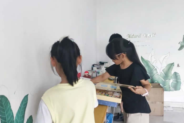 8月16日下午,孩子們在老師的帶領下,對教室、宿舍樓圖書角進行了掃除,一個半小時的時間里,他們把教室清空,把學習用品和手工材料碼放得整整齊齊。清理完教室之后,孩子們又轉戰宿舍圖書角,將書架臺面、夾層都擦得一塵不染。