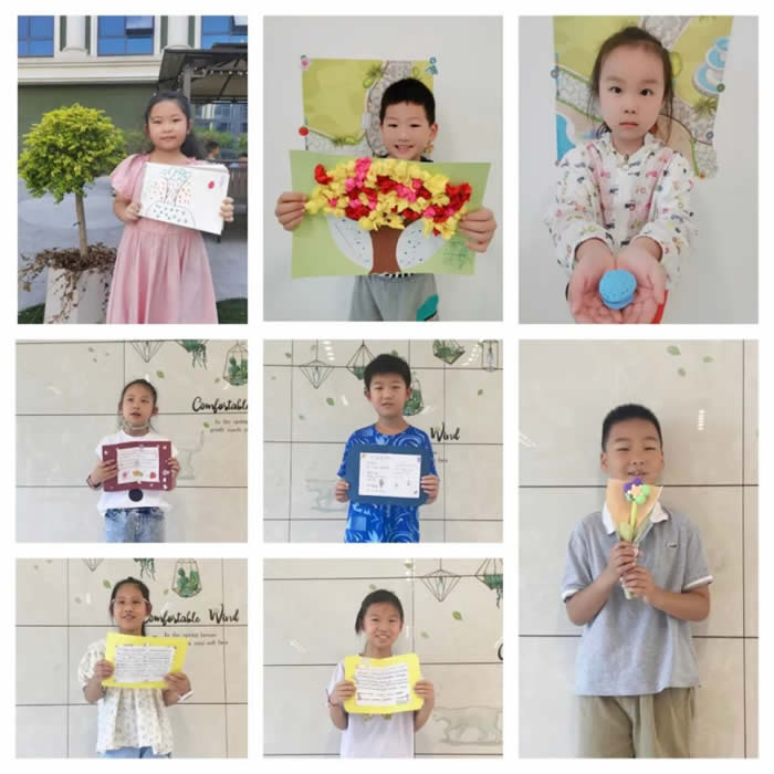 隨后,在老師和辦公室職員的帶領下,孩子們分別向默默支持暑托班工作的行政后勤人員表達了感恩。大班孩子們為大家表演了朗誦、唱歌節目,還為每位職工送上親手制作的手工花。